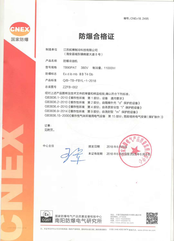 拓博制冷整機(jī)具有防爆證書冷油機(jī)正式進(jìn)入市場(chǎng)